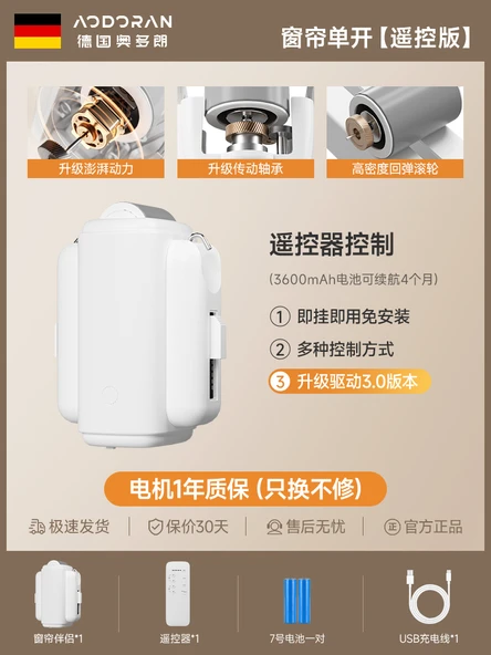 Akıllı Elektrikli Perde Motoru - Ray Tek Açılım, Uzaktan Kumandalı, 3600mAh
