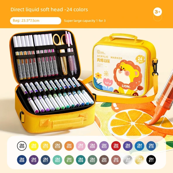 Akrilik Marker Kalem Seti - Yumuşak Uç - Peynir Paketi Aslan - 24 Renk - Akıllı Mürekkep Kontrolü