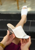 - Akva Beyaz Triko Şeffaf Topuklu Terlik