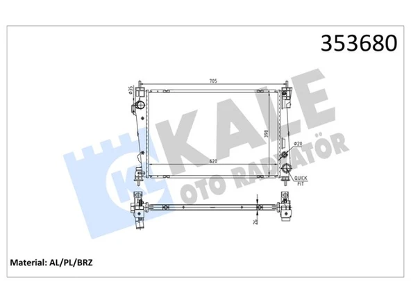 Alfa Romeo Motor Su Radyatoru Alfa Romeo Giulıetta 1.6 Jtdm 15> 2.0 Jtdm 10> (ac/nac) (mt) [brazıng] [620x398x2 - Kale 353680