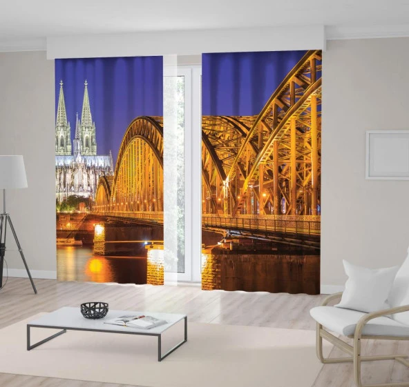 Baskılı Fon Perde Almanya Turuncu Işıklı Köprü Manzaralı