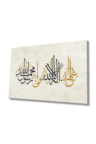 AlpiLeo Kelime-i Şehatdet Islami Dini Islami Alp Özel Cam Tablo, Ev Ve Ofis Duvar Dekoru