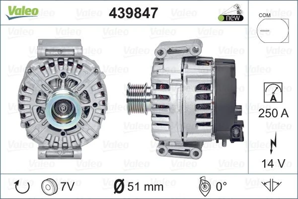 Mercedes Alternator (14v 250a) X-Class 470 18>20 W463 15>18 W222 13>17 Sprinter 906 09> 907 910 18> - Valeo 439847