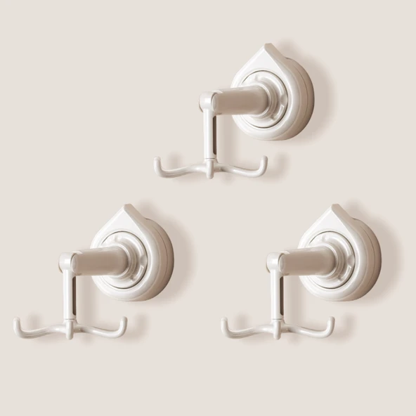 Altı Çengelli Döner Mutfak Saklama Askısı - Krem 3 Adet