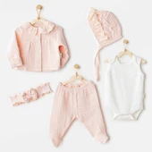 Ana Sayfa Anne & Bebek & Oyuncak Bebek Giyim Erkek Bebek Giyim Hastane Çıkışı Mevlit Takımı Andywawa AC25840 Natural Gift Müslin 5'Li Hastane Çıkışı Salmon