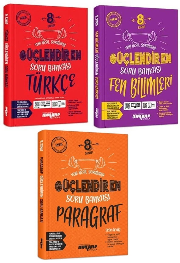 Ankara 2025 8. Sınıf Türkçe + Paragraf + Fen Güçlendiren Soru Seti 3 Kitap
