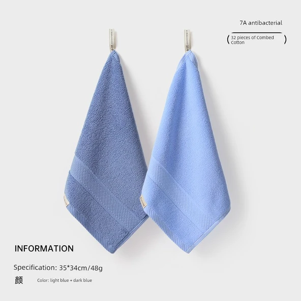 Antibakteriyel Pamuklu Kare El Havlusu 3'lü Set - Koyu Mavi + Açık Mavi