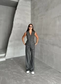 - Antrasit Çok Düğmeli Çizgili Premium Takım