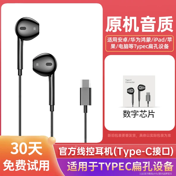 Apple 15-16 Uyumlu Type-C Düz Girişli Siyah Kablolu Kulaklık