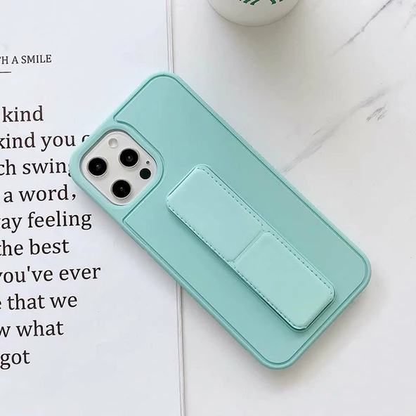 - Apple IPhone 12 Pro Uyumlu Mat Siyah Yumuşak Silikon Standlı Tutacaklı (Tutamaçlı) Telefon Kılıfı