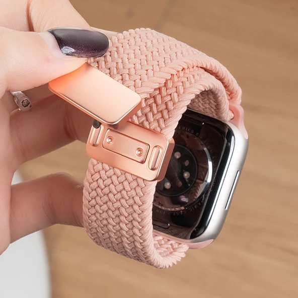 Apple Watch Manyetik Örgü Naylon Kordon - iwatch S10 [42mm] - Krem Pudra Kum Rengi