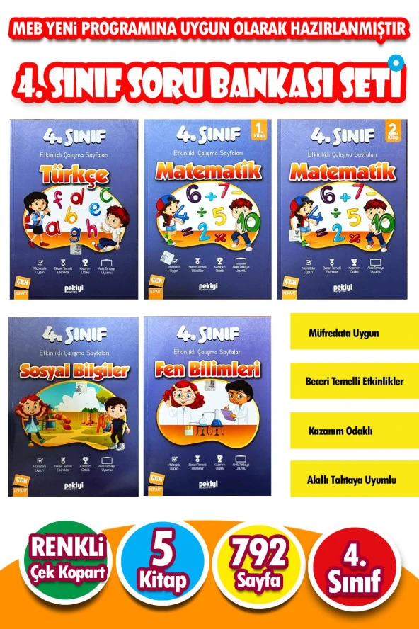4.SINIF ETKİNLİKLİ ÇALIŞMA SETİ 5 Kitap Toplam 792 Sayfa