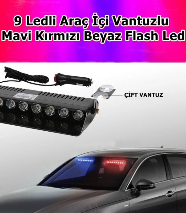 NKT GROUP 9 Ledli Araç İçi Vantuzlu Mavi Kırmızı Beyaz Çakar Led