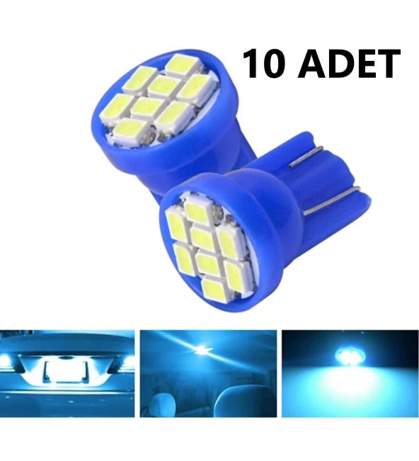 10 Adet Buz Mavi T10 Park Ledi Mini 8 Ledli Model