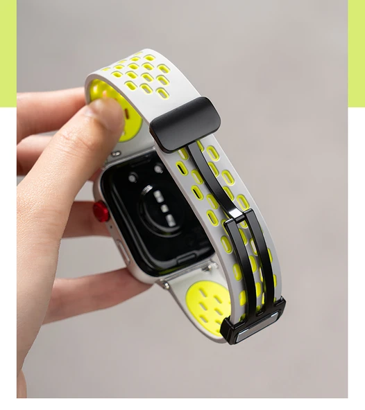 Watch 20mm Spor Delikli Kordon - Gri-Yeşil