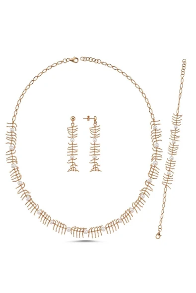 6,5 mm Taşlı Doğal İnci Küpe Kolye Bileklik Üçlü Set