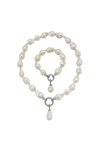 20,5 mm Halka Kilitli Barok Doğal İnci Kolye Bileklik İkili Set