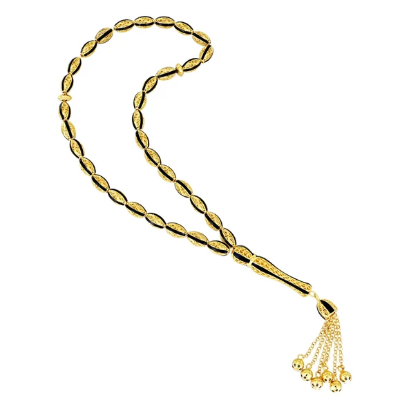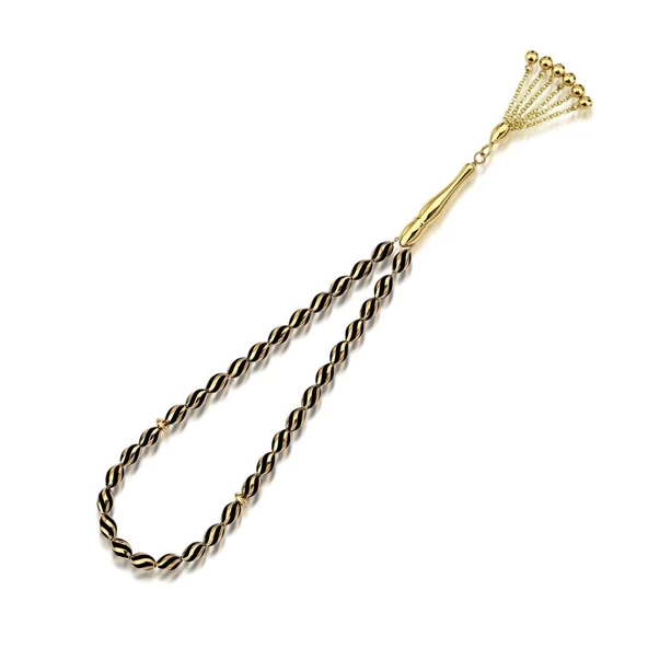 Altın Tesbih Siyah Line Mine 14 Ayar