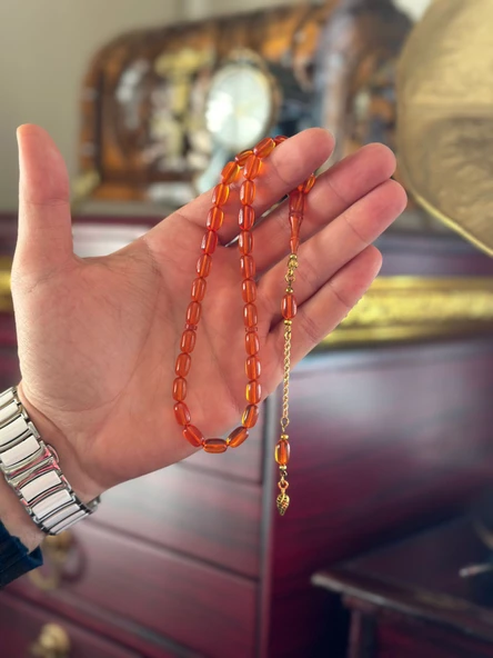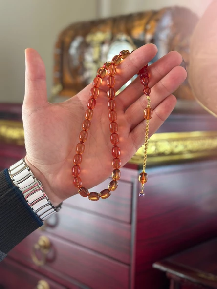 14 Ayar Altın Zincirli Ateş Kehribar Tesbih