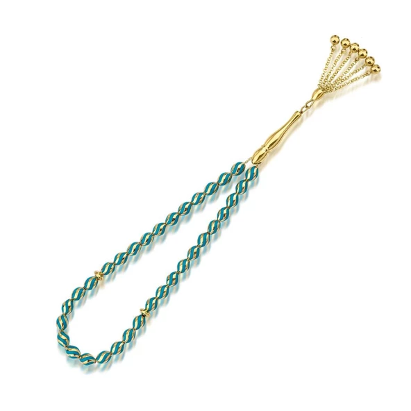 Altın Tesbih Turkuaz Line Mine 14 Ayar