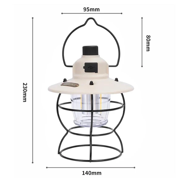 Powermaster Pm-16042 Retro Nostaljik Şarjlı Kamp Lambası Filament + Smd Ledli
