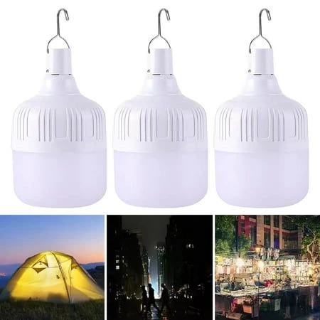 3 Adet Adet USB Şarjlı, 30 Watt, 3 Işık Modlu Beyaz Işık, Kamp, Piknik, Bekçi, Balıkçı, Çadır Ampulü