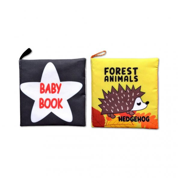 2 Kitap Tox İngilizce Siyah-Beyaz Bebek ve Orman Hayvanları Kumaş Sessiz Kitap E136 E127 - Bez Kitap , Eğitici Oyuncak , Yumuşak ve Hışırtılı