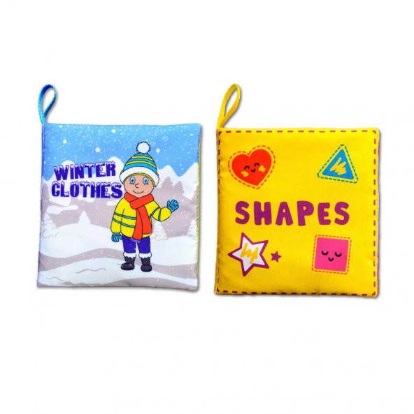 2 Kitap Tox İngilizce Kışlık Giysiler ve Şekiller Kumaş Sessiz Kitap E124 E131 - Bez Kitap , Eğitici Oyuncak , Yumuşak ve Hışırtılı