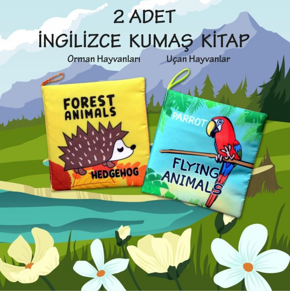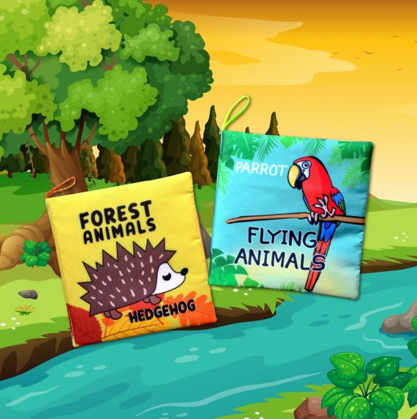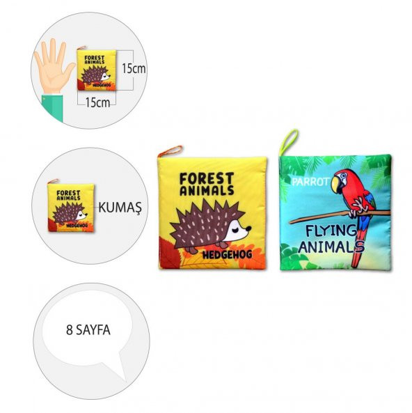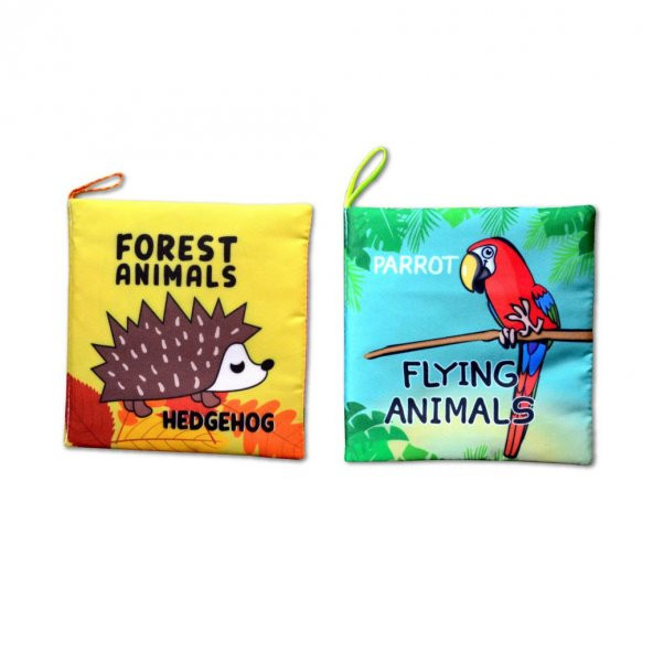 2 Kitapİngilizce Orman Hayvanları ve Uçan Hayvanlar Kumaş Sessiz Kitap E127 E133 - Bez Kitap