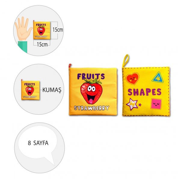 2 Kitapİngilizce Meyveler ve Şekiller Kumaş Sessiz Kitap E126 E131 - Bez Kitap