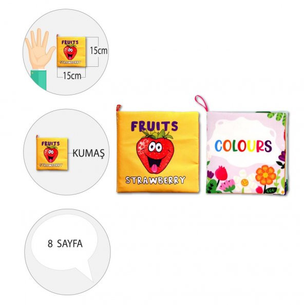 2 Kitapİngilizce Meyveler ve Renkler Kumaş Sessiz Kitap E126 E129 - Bez Kitap