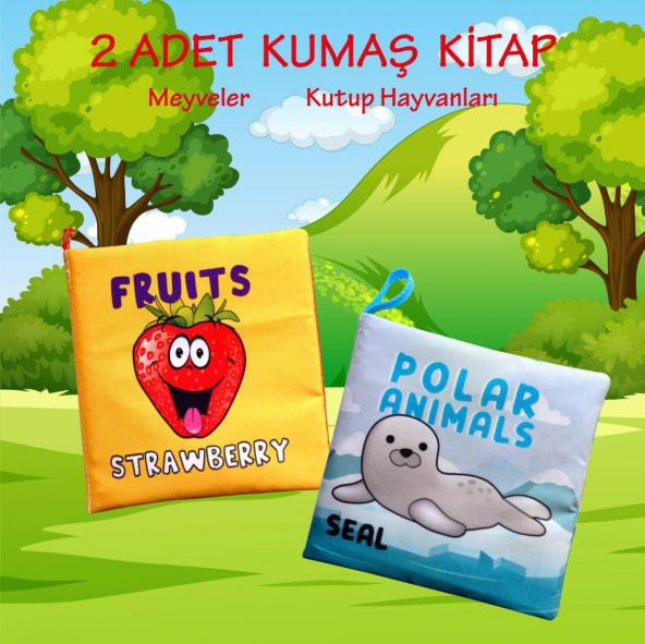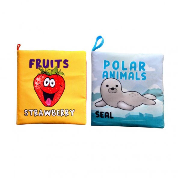 2 Kitapİngilizce Meyveler ve Kutup Hayvanları Kumaş Sessiz Kitap E126 E125 - Bez Kitap