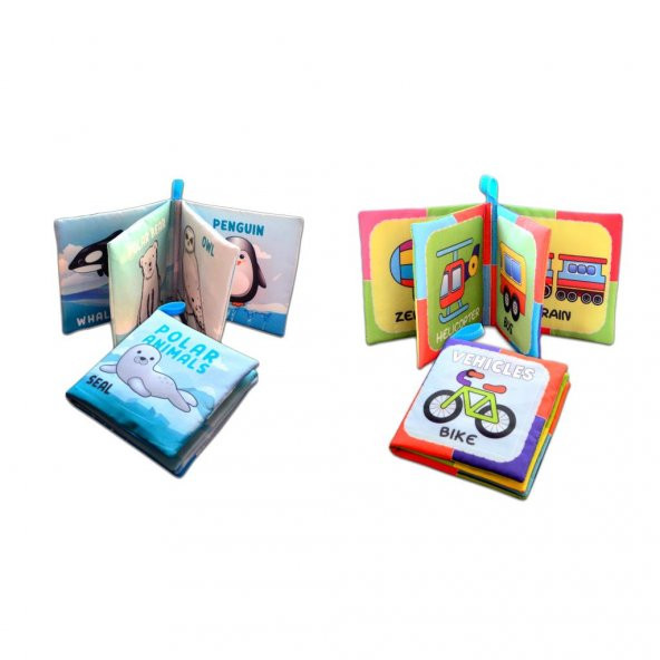 2 Kitapİngilizce Kutup Hayvanları ve Taşıtlar Kumaş Sessiz Kitap E125 E132 - Bez Kitap