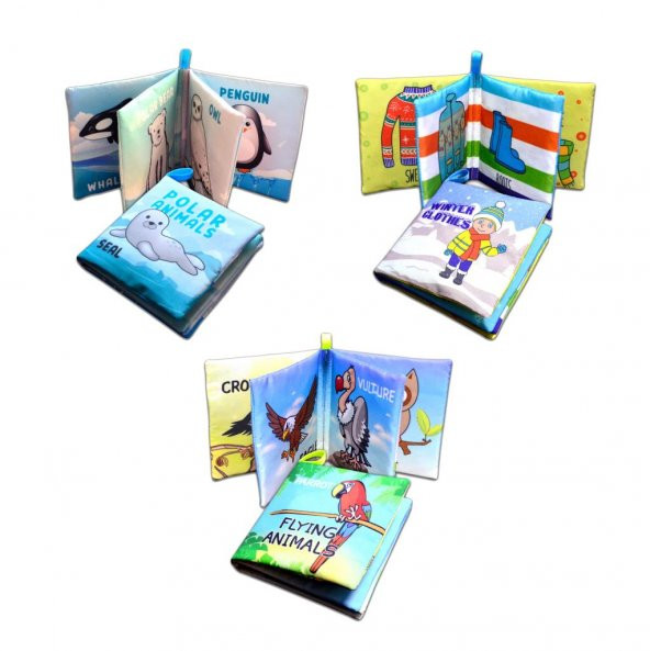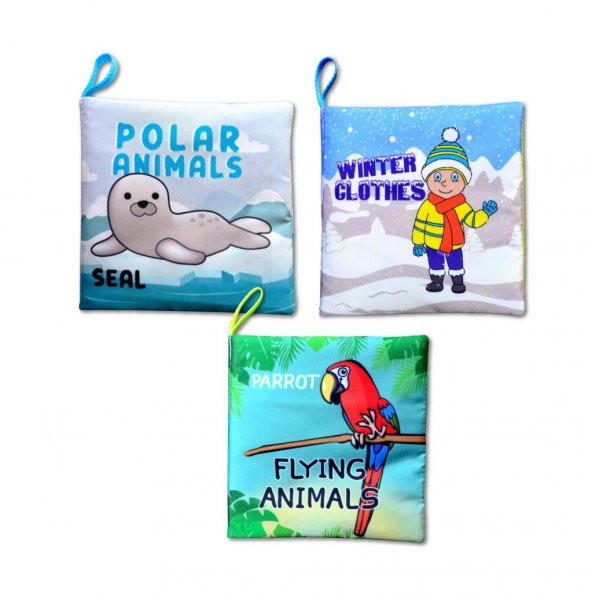 3 Kitapİngilizce Kutup Hayvanları , Uçan Hayvanlar ve Kışlık Giysiler Kumaş Sessiz Kitap E124 E125 E133 - Bez Kitap