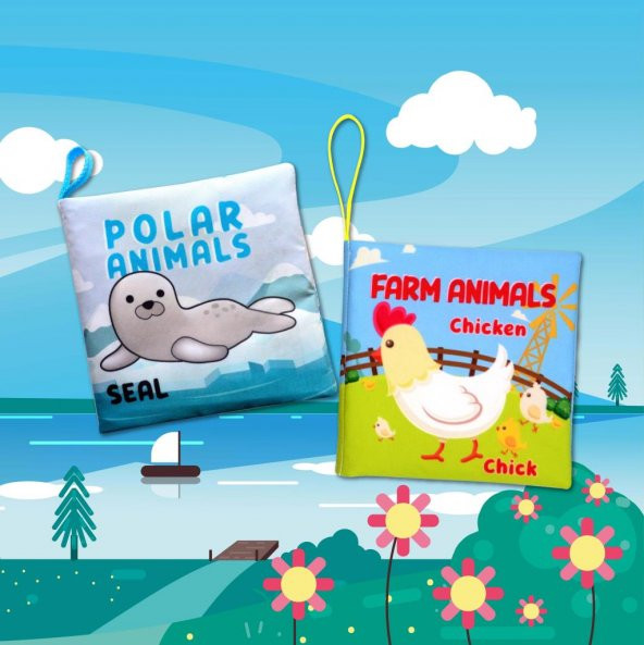 2 Kitapİngilizce Kutup Hayvanları ve Çiftlik Hayvanları Kumaş Sessiz Kitap E125 E119 - Bez Kitap
