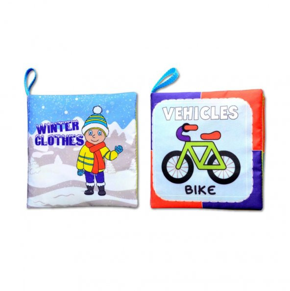 2 Kitapİngilizce Kışlık Giysiler ve Taşıtlar Kumaş Sessiz Kitap E132 E124 - Bez Kitap