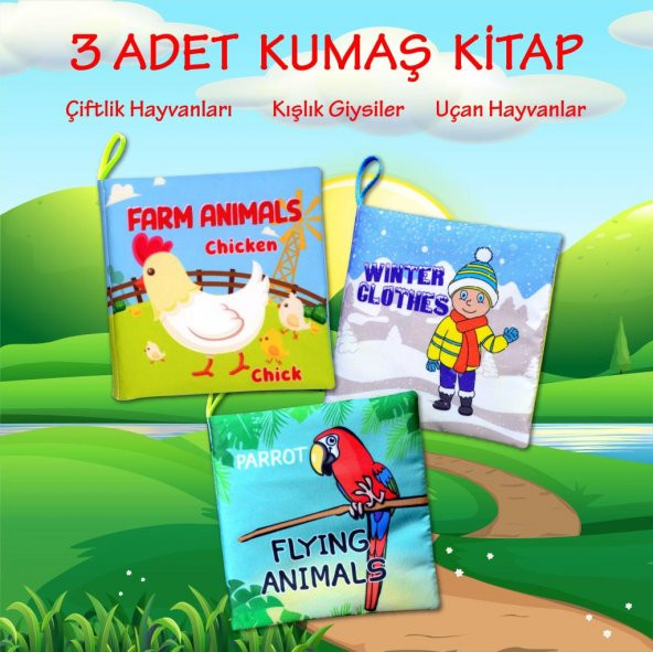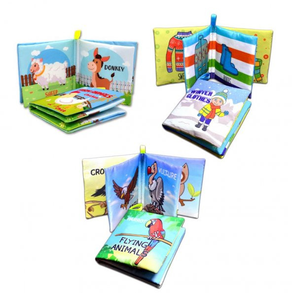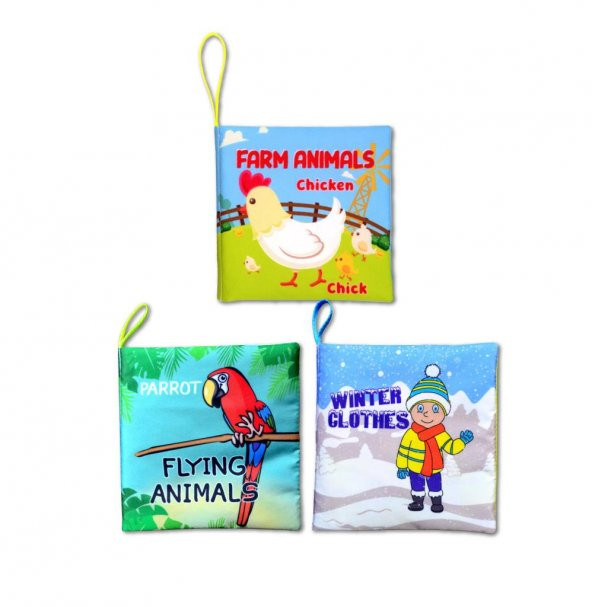 3 Kitapİngilizce Kışlık Giysiler , Uçan ve Çiftlik Hayvanları Kumaş Sessiz Kitap E119 E124 E133 - Bez Kitap