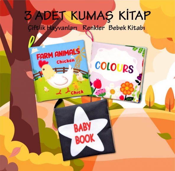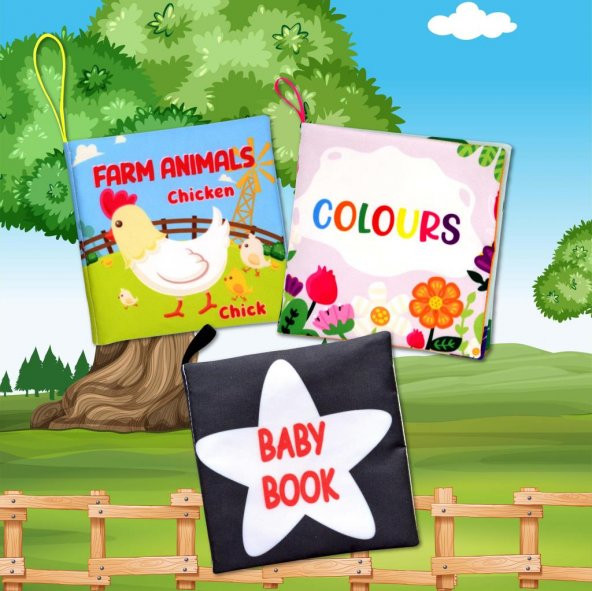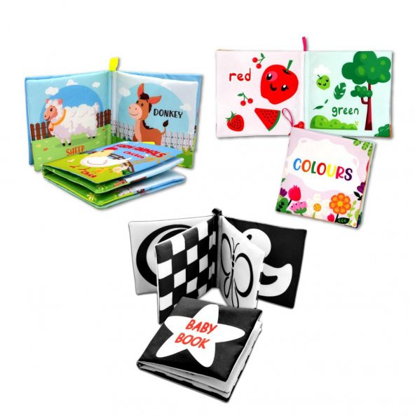 3 Kitapİngilizce Çiftlik Hayvanları , Renkler ve Siyah-Beyaz Bebek Kumaş Sessiz Kitap E119 E129 E136 - Bez Kitap