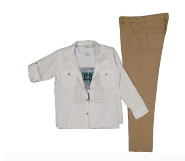 uğurböceğiçocuk Terry Jean Karışık 3'lü Erkek Gömlekli Takım 7223
