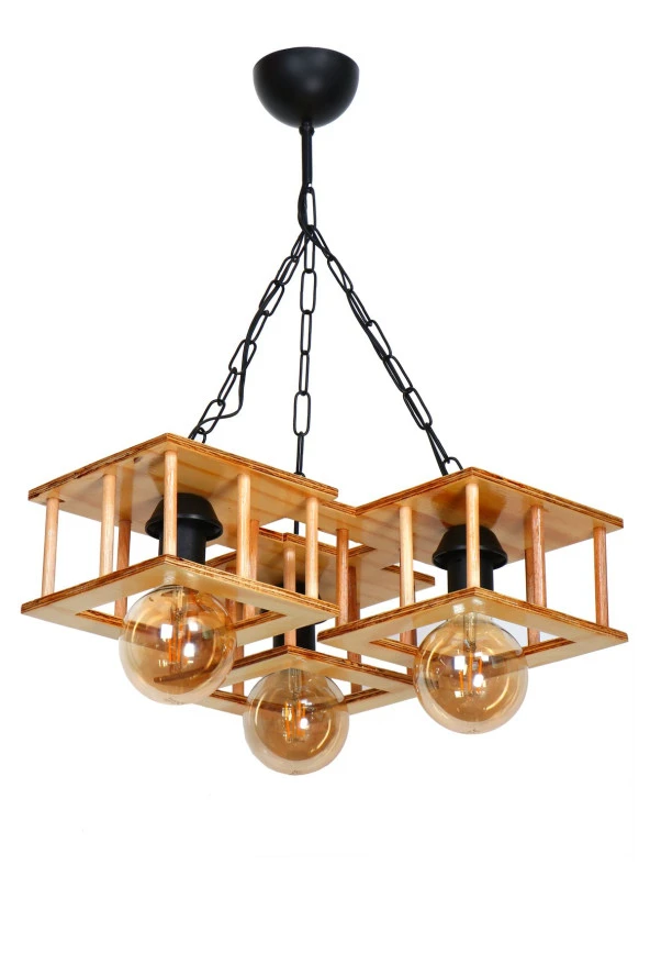 Aysem Wood Aysem 3 Lü Rustik Ahşap Avize Salon Aydınlatma