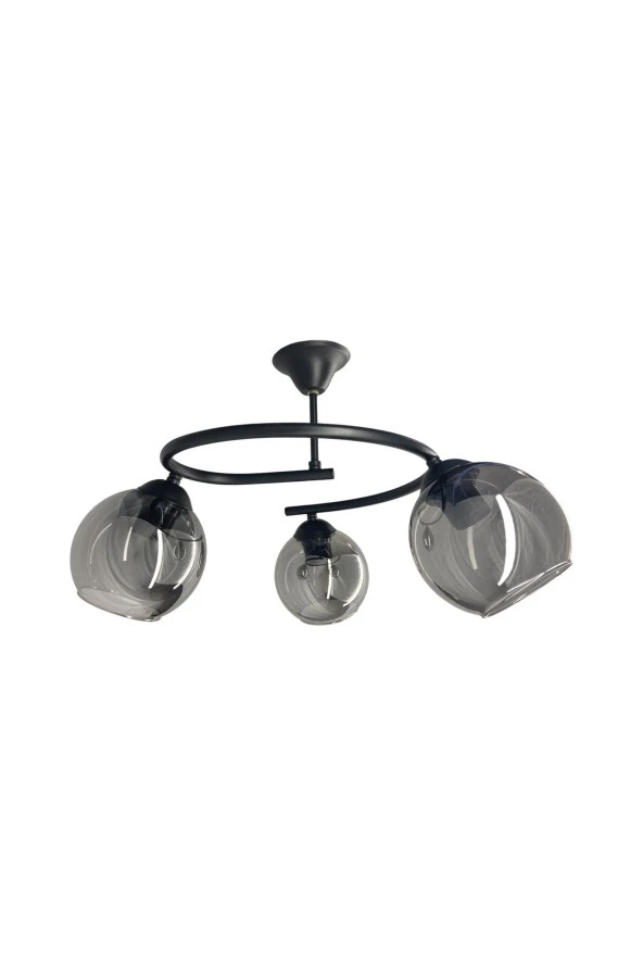 Mutu Ticaret Dönence Siyah 3'lü Füme Camlı Avize | Kaliteli Modern Metal Avize