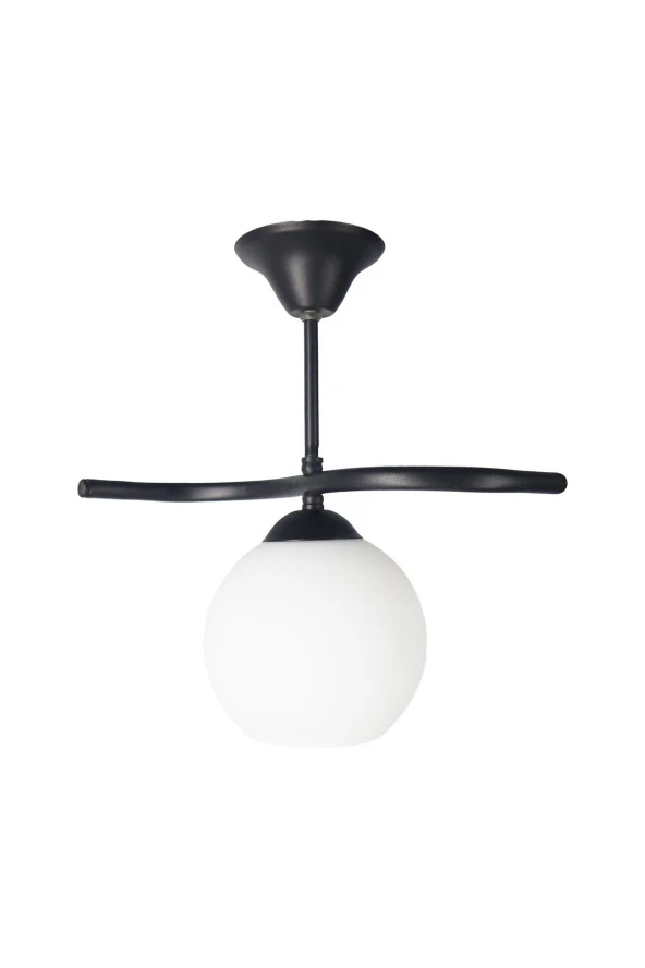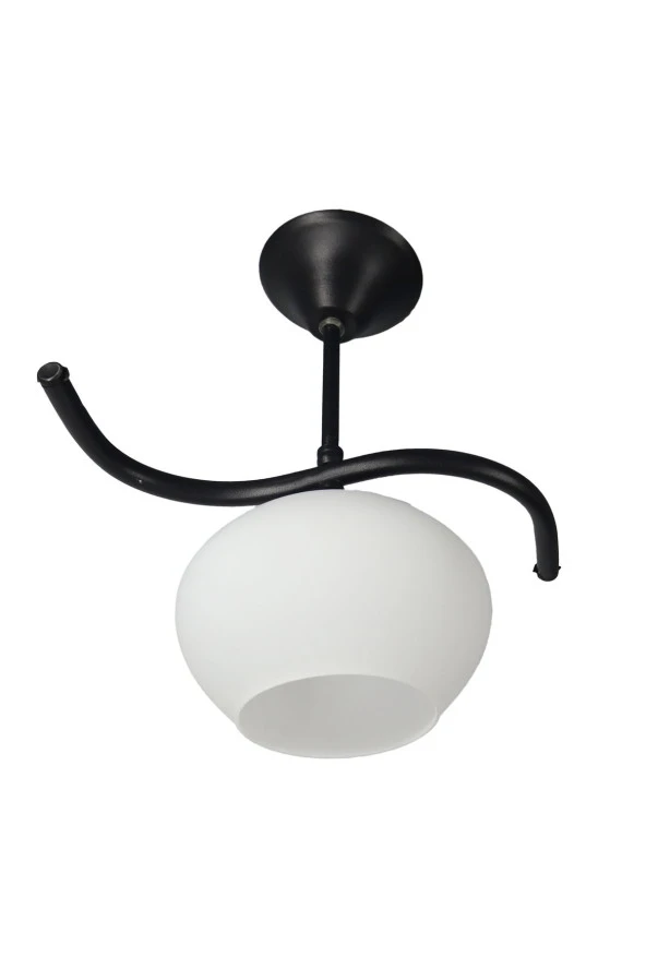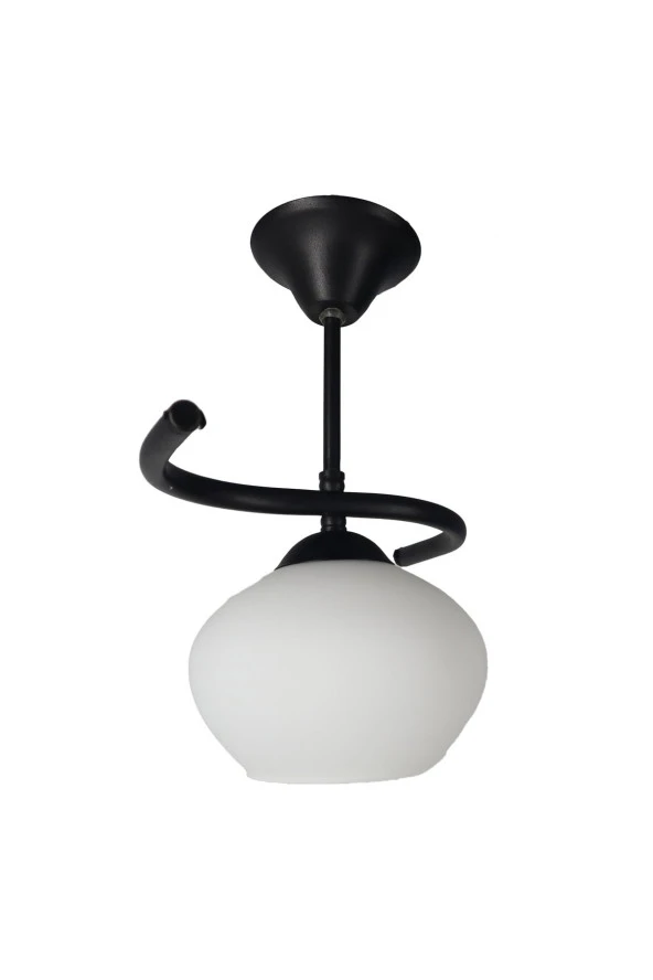 Mutu Ticaret Fuji Siyah Tekli Beyaz Camlı Avize | Kaliteli Modern Metal Avize