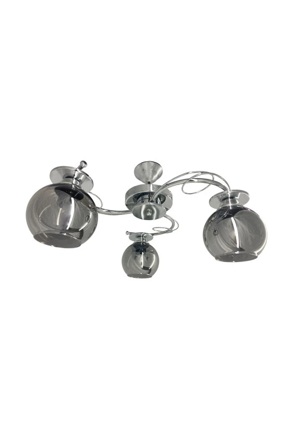 Mutu Ticaret İlay Krom 3'lü Füme Camlı Avize | Kaliteli Modern Metal Avize