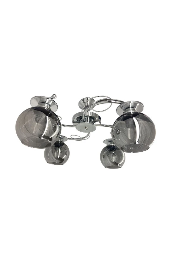 Mutu Ticaret Rima Krom 6'lı Füme Camlı Avize | Kaliteli Modern Metal Avize
