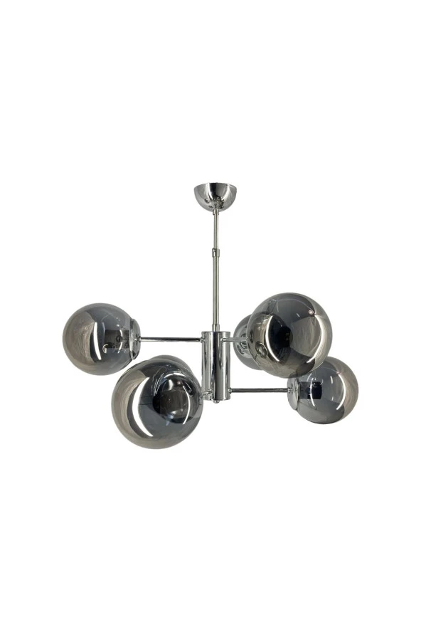Mutu Ticaret İlay Krom 4'lü Füme Camlı Avize | Kaliteli Modern Metal Avize