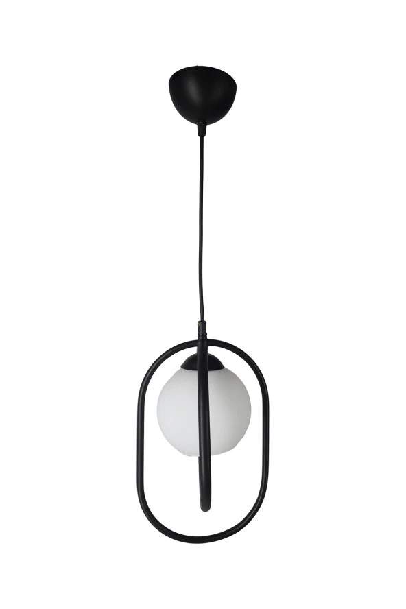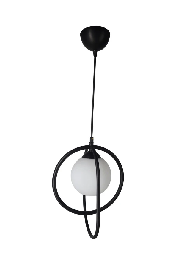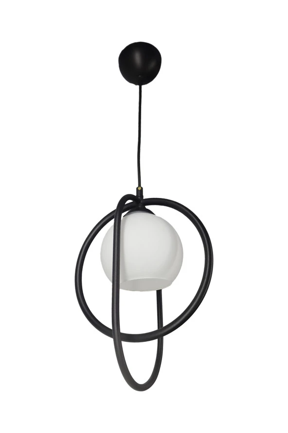 Mutu Ticaret Olimpiyat Siyah Tekli Beyaz Camlı Avize | Kaliteli Modern Metal Avize