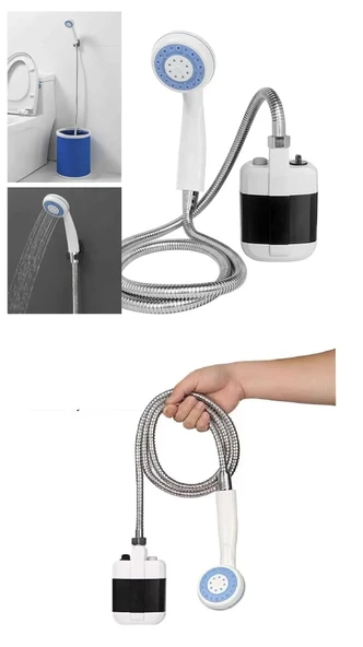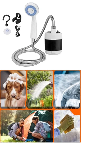 USB Şarjlı El Duş Pompası Taşınabilir Kamp Tatil Seyahat Banyo Su Pompası Başlık Hortum Seti