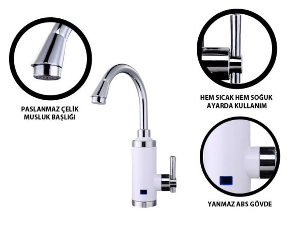 Elektrikli Sıcak Musluk Ani Su Isıtıcı Termal Şofben Musluk ASG-4S