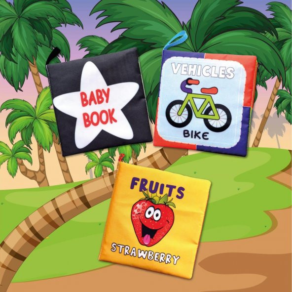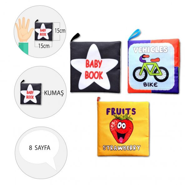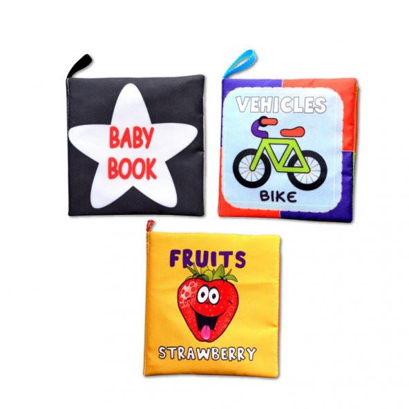 3 Kitapİngilizce Taşıtlar , Meyveler ve Siyah-Beyaz Bebek Kumaş Sessiz Kitap E126 E132 E136 - Bez Kitap