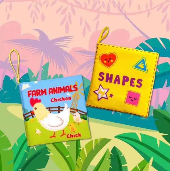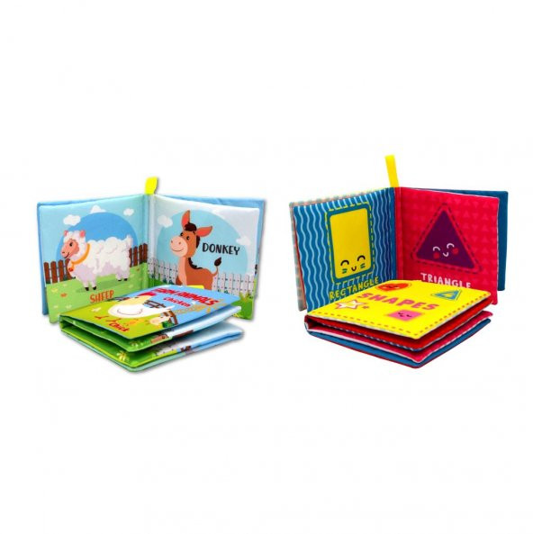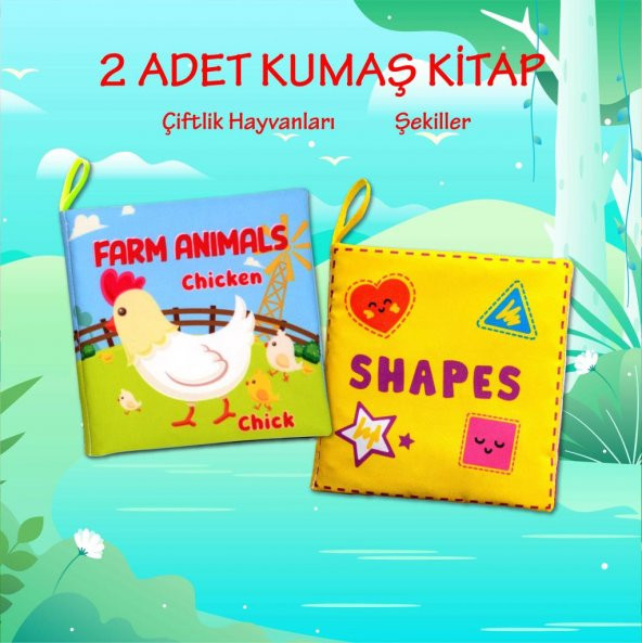 2 Kitapİngilizce Çiftlik Hayvanları ve Şekiller Kumaş Sessiz Kitap E119 E131 - Bez Kitap